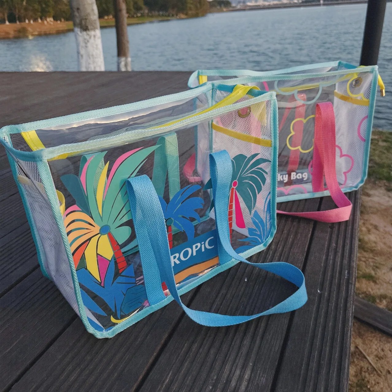 Summer Student Transparent Shoulder Bag Custom clear Jelly Pvc Beach Tote Transparent Cosmetic Makeup Portable Shopping Handbag
